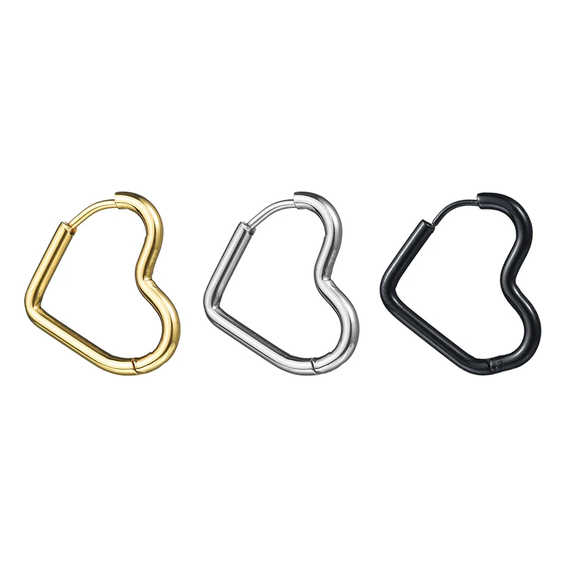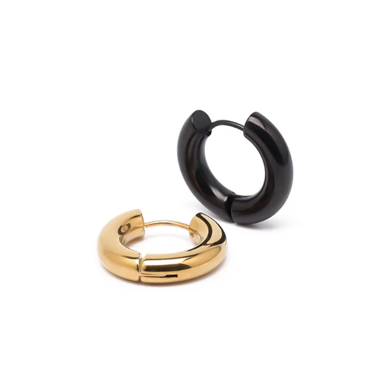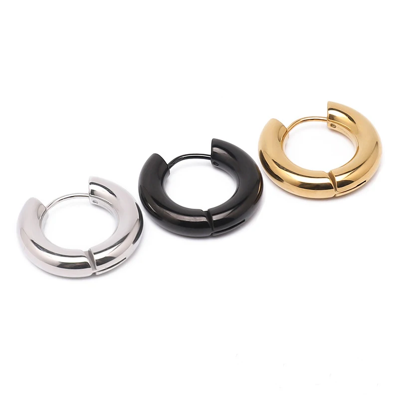 Glossy Stainless Steel Hoop Earrings For Women Men Hip Hop Steapunk Round Oval Heart Black Gold Silver Color Huggie Jewelry Gift