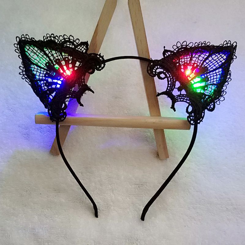 Glowing Hair Accessories Flashing Lights Cat Ears Headband Black lace