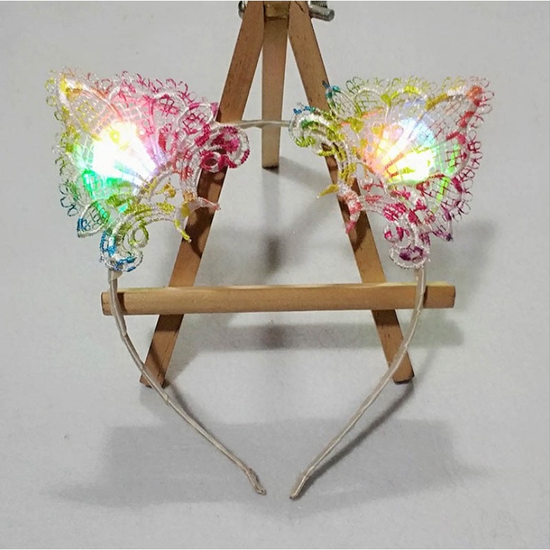 Glowing Hair Accessories Flashing Lights Cat Ears Headband Pastel colours