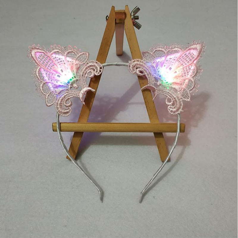 Glowing Hair Accessories Flashing Lights Cat Ears Headband Pink lace