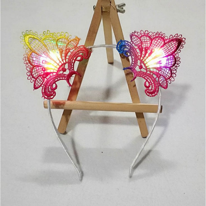 Glowing Hair Accessories Flashing Lights Cat Ears Headband White lace