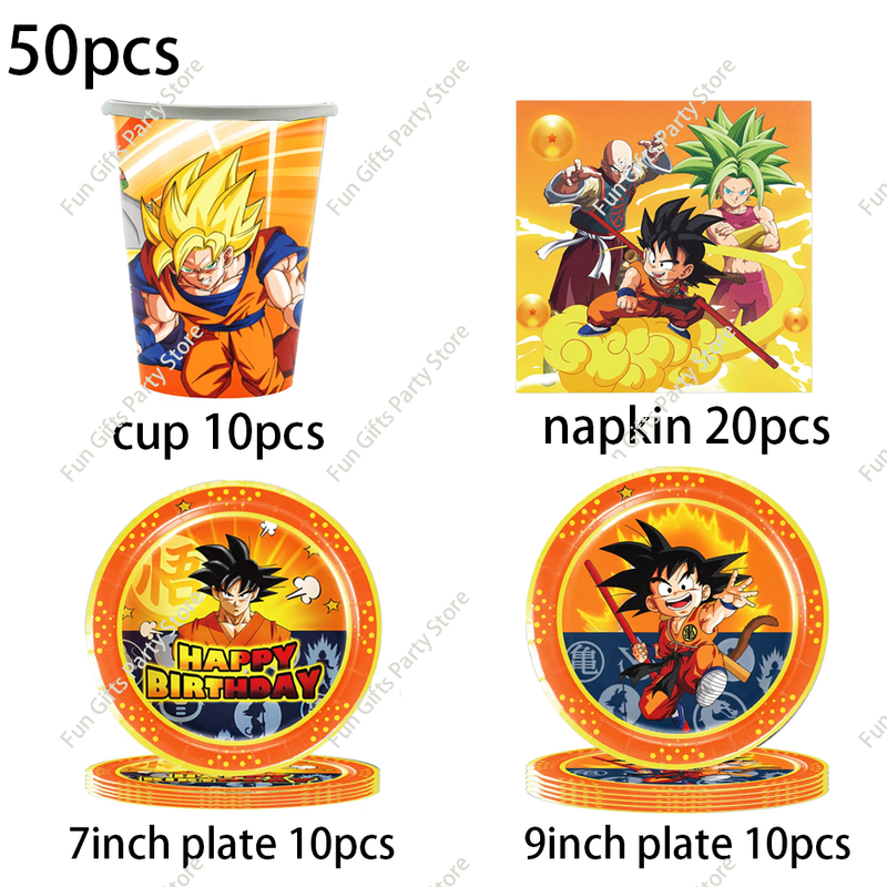 Goku Dragon Ball Birthday Decoration Tablecloth Paper Cup Plate Napkin Gifts Bag Disposable Tableware Kids Baby Shower Kit Party