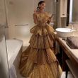 Gold A-Line Strapless Ruffles Evening Dresses Luxury Gowns For Women Formal Party Prom Dress