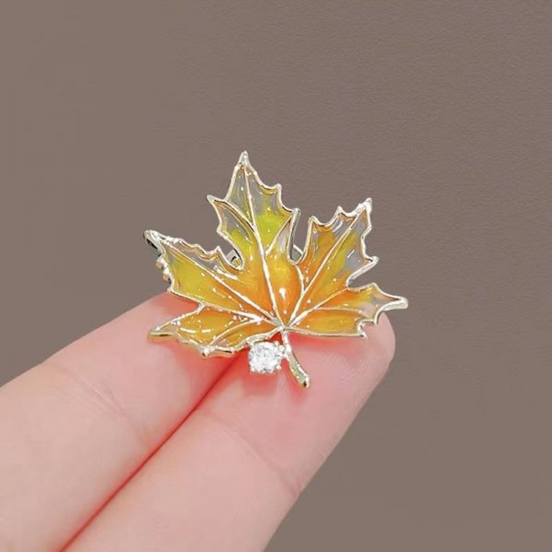 Gold Color Ginkgo Leaf Brooches Pins For Women Shiny Crystal Zircon Pearl Plant Brooch Corsage Wedding Party Clothing Jewelry