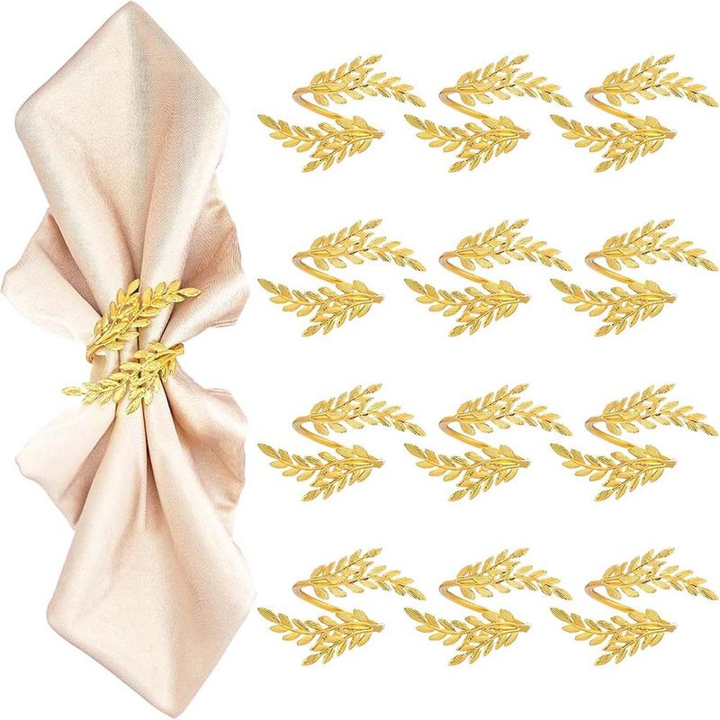 Gold Leaf Napkin Ring Buckles Elegant Napkins Holder for Wedding Birthday Party Dinnig Christmas Thanksgiving Table Decoration