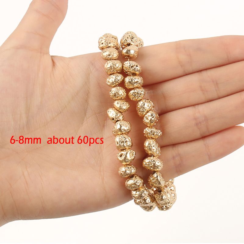 Name:Gold Plated Natural Volcanic Lava Stone Round Irregular Dics Loose Spacer Beads for Jewelry Bracelet Necklace Making DIY Finding