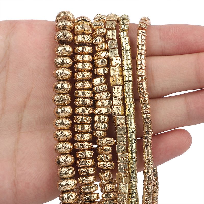 Name:Gold Plated Natural Volcanic Lava Stone Round Irregular Dics Loose Spacer Beads for Jewelry Bracelet Necklace Making DIY Finding
