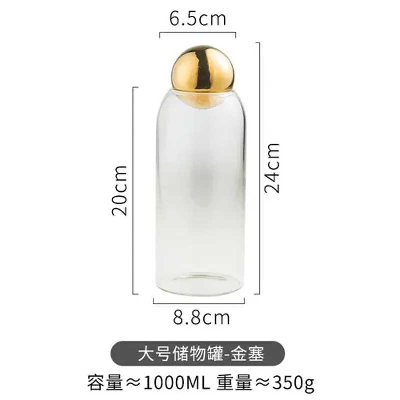 Golden Cork Cover Glass Storage Jar Kitchen Food Storage Container Coffee Bean Tea Can Sundries Storage Bottle Home Decoration