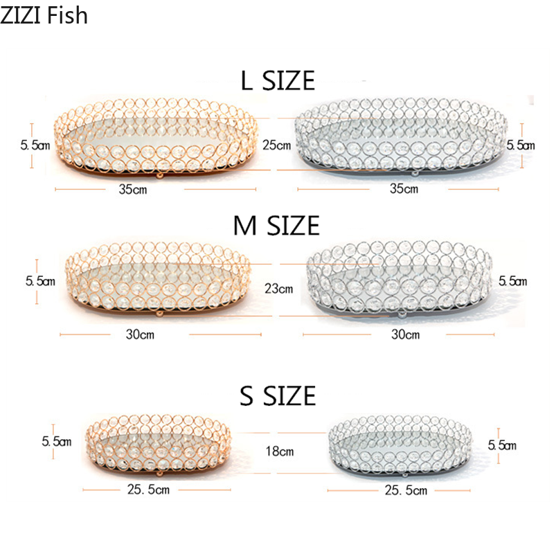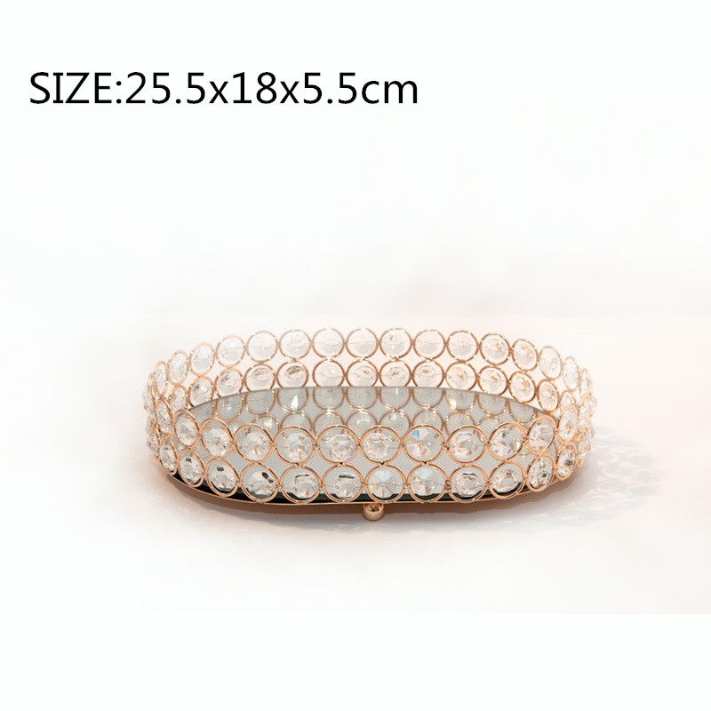 Product Title: Golden Crystal Mirror Tray Jewelry Storage Box Glass Mirror Cosmetic Rack Desktop Storage Organizing Dishes Wedding Fruit Dish