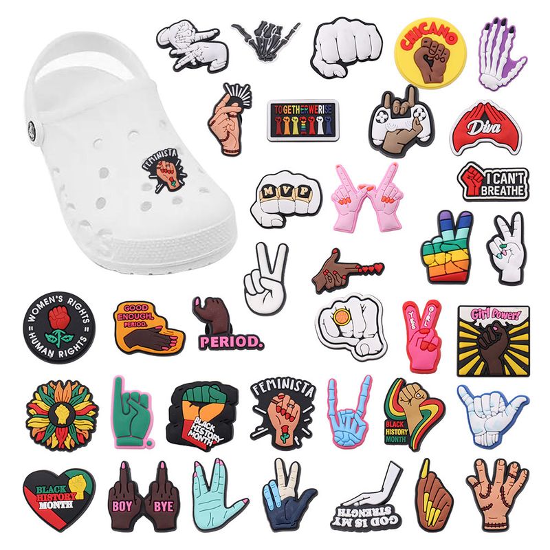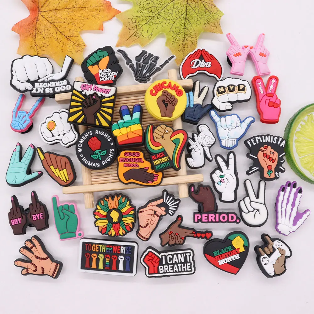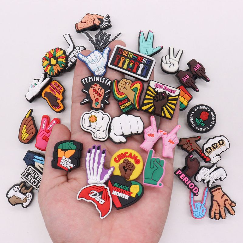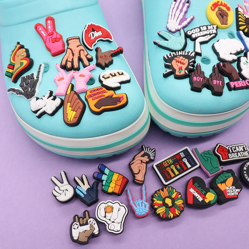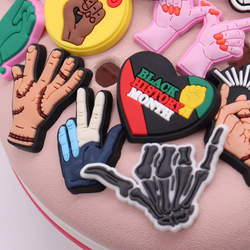 Good Quality 1pcs PVC Shoe Charms Pink Black Skeleton Palm Fingers Rose Accessories DIY Shoes Ornament Fit Wristbands Kids Gift