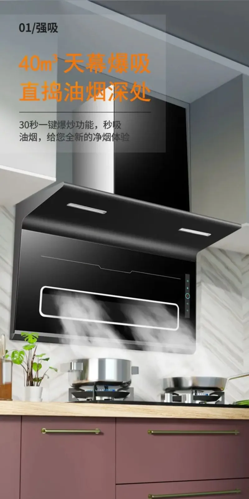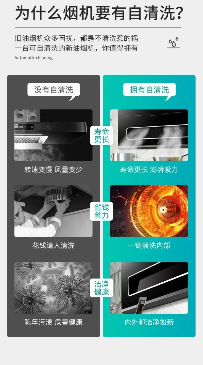 Good wife household kitchen large suction range hood top side double suction automatic cleaning smoke machine wall-mounted mute