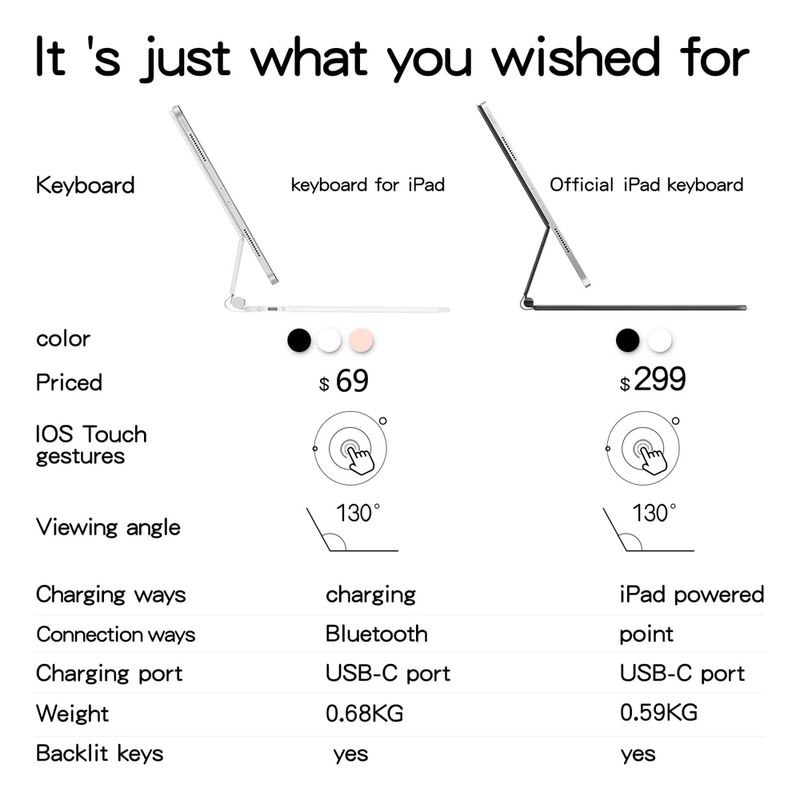 GOOJODOQ keyboard case with a built-in precision trackpad that can quickly and easily navigate your iPad. Full multi-touch gesture support lets you redefine productivity by allowing you to edit documents, build presentations, and browse the web with unparalleled speed.