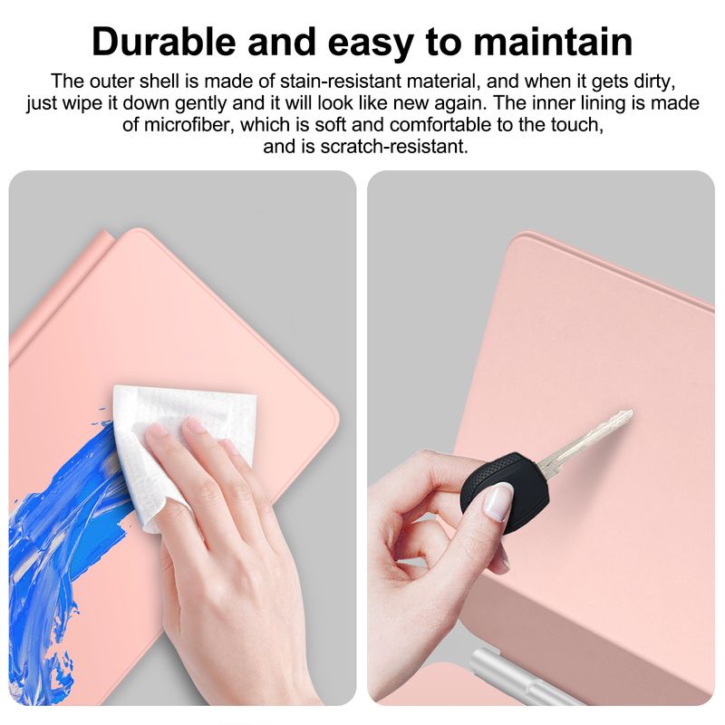 The scratch-resistant vegan leather protects both the front and back of your iPad without sacrificing camera or audio functions.
