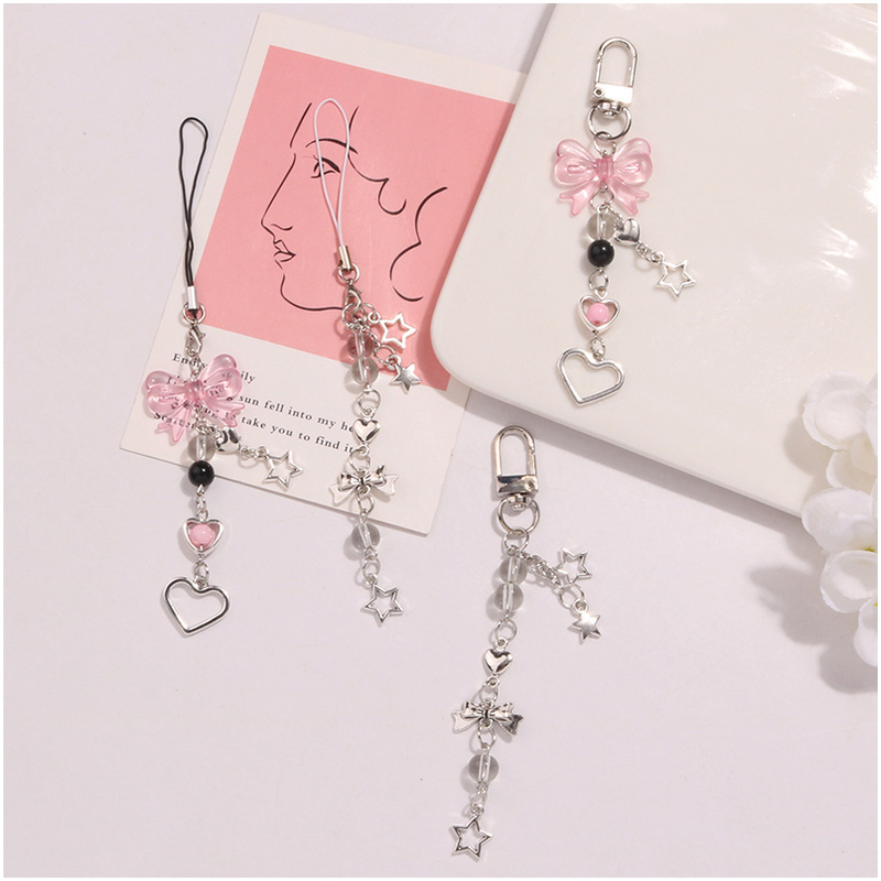 Delicate Bow Star Heart Keychain For iphone Creative Lanyard Key Chain Bag Phone Pendant Chain Y2K Kpop Jewelry Girls Gift