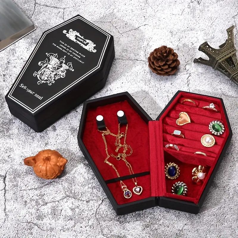 Gothic Jewelry Box PU Coffin Multi-Compartment Organizer Case for Earring Necklace Ring Storage Halloween Gifts for Women
