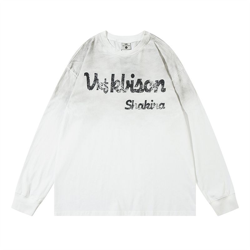 Gothic Letter Printing T-shirt Long Sleeve Men White S