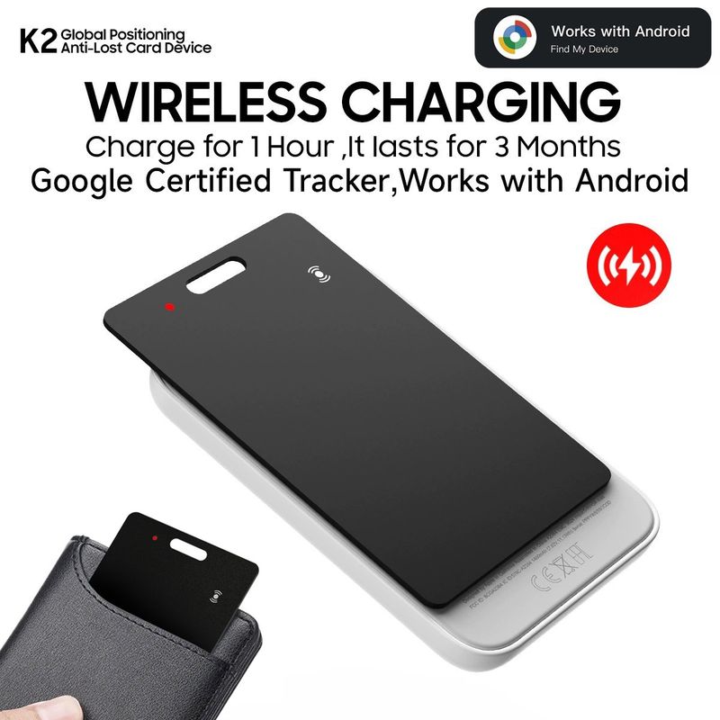 GPS Tracker for Android Phones, Wireless Charging Waterproof Location Finder, Wallet Tracker Card Compatible with Google Find My