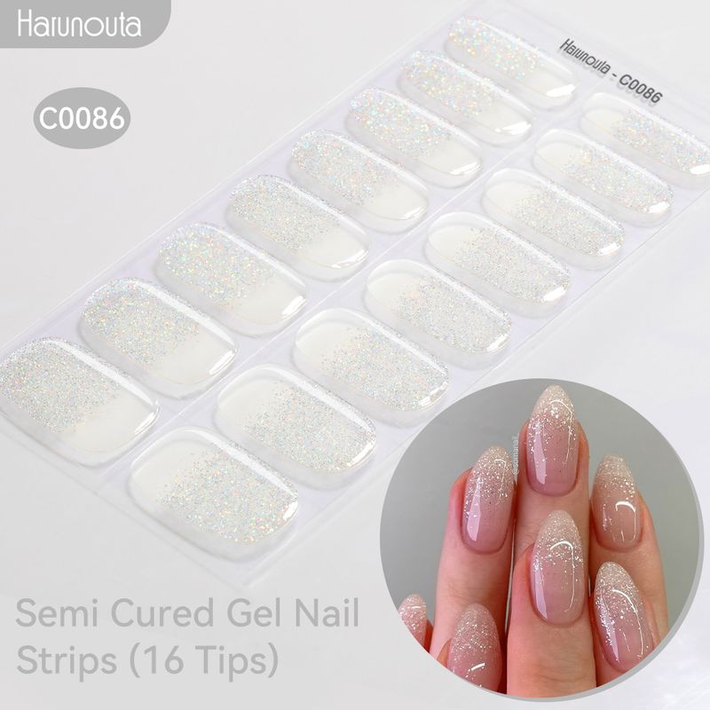 Gradient Auroras Semi Cured Gel Nail Strips Sparkly Shinning DIY Gel Polish Stickers for Nails Works with UV/LED Nail Lamps