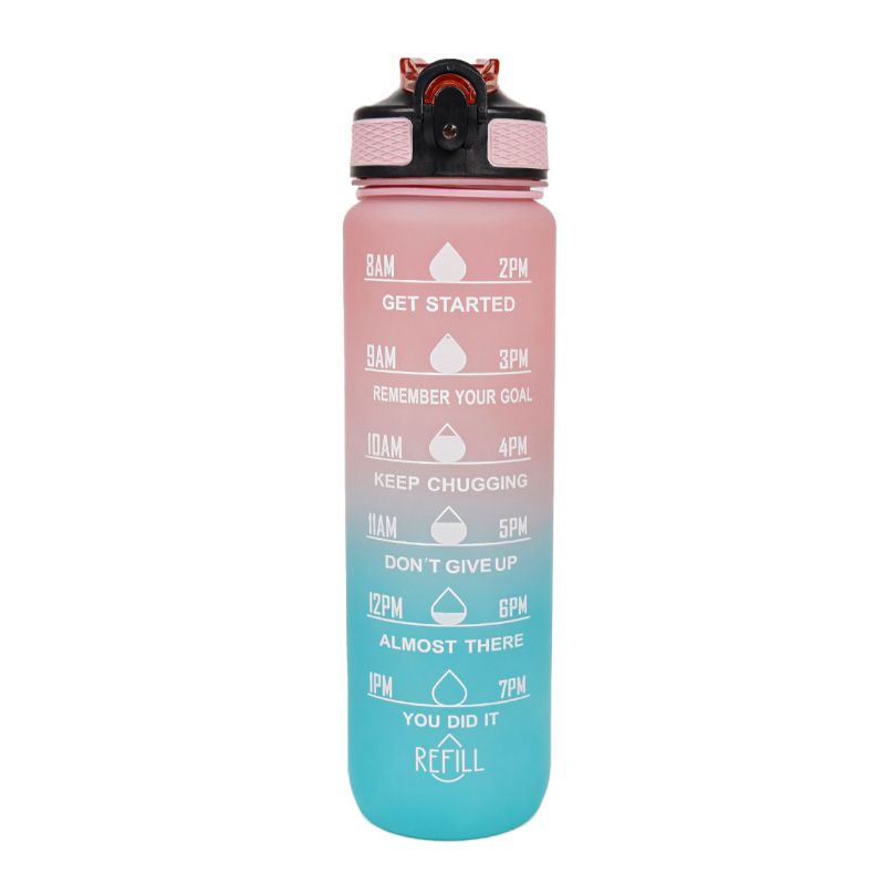 Gradient Color 1000ml Plastic Water Bottle with Straw Leak-Proof Sports Water Bottle for Outdoor Travel Fitness Cycling
