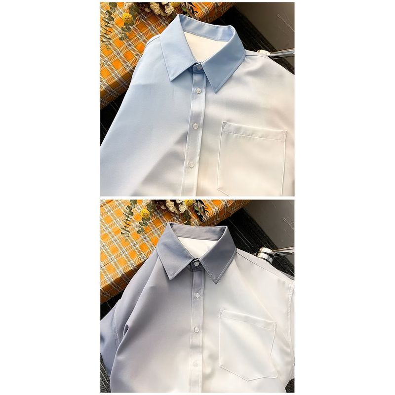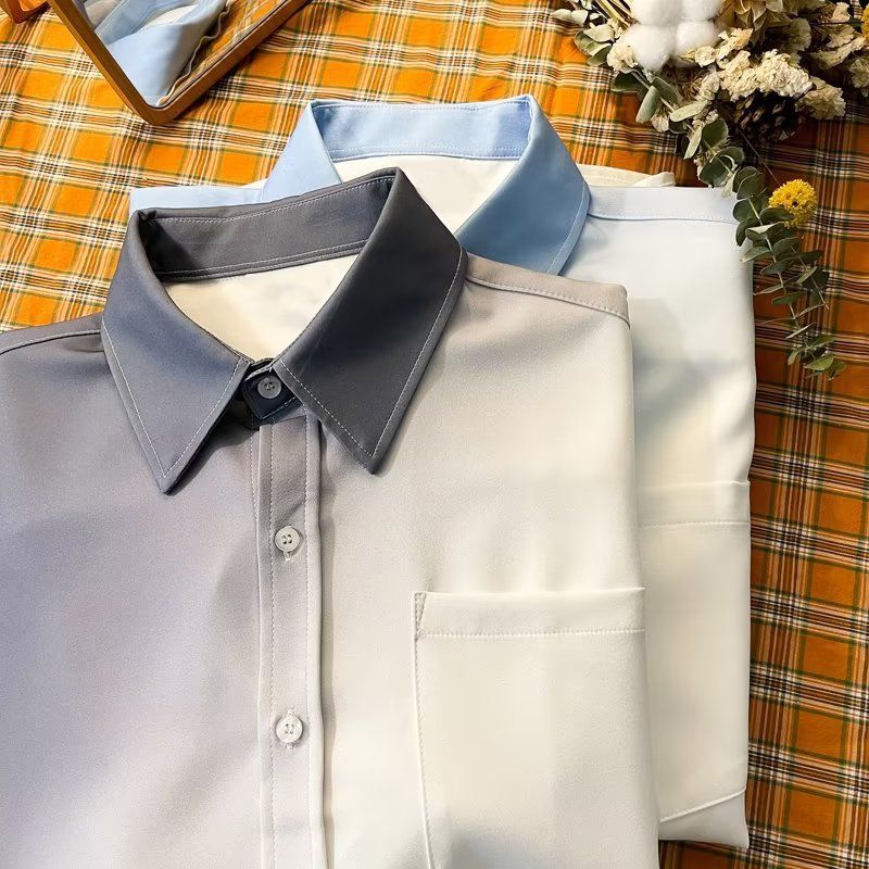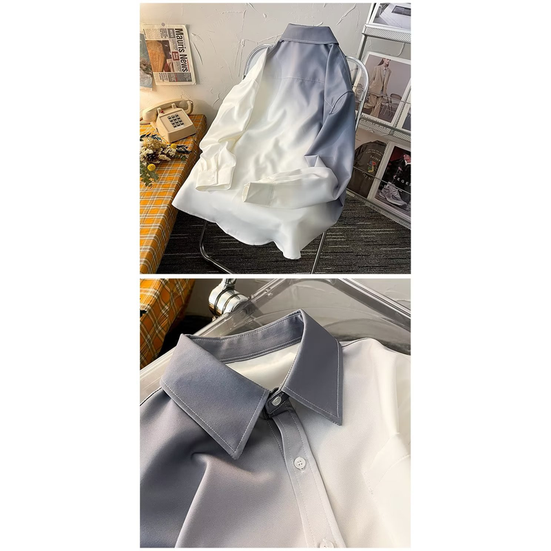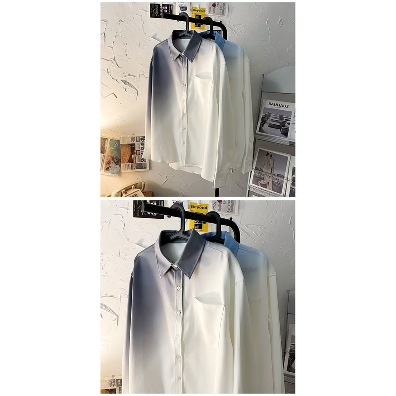 Gradient Color Casual Long-sleeved Shirt Gray XXXL