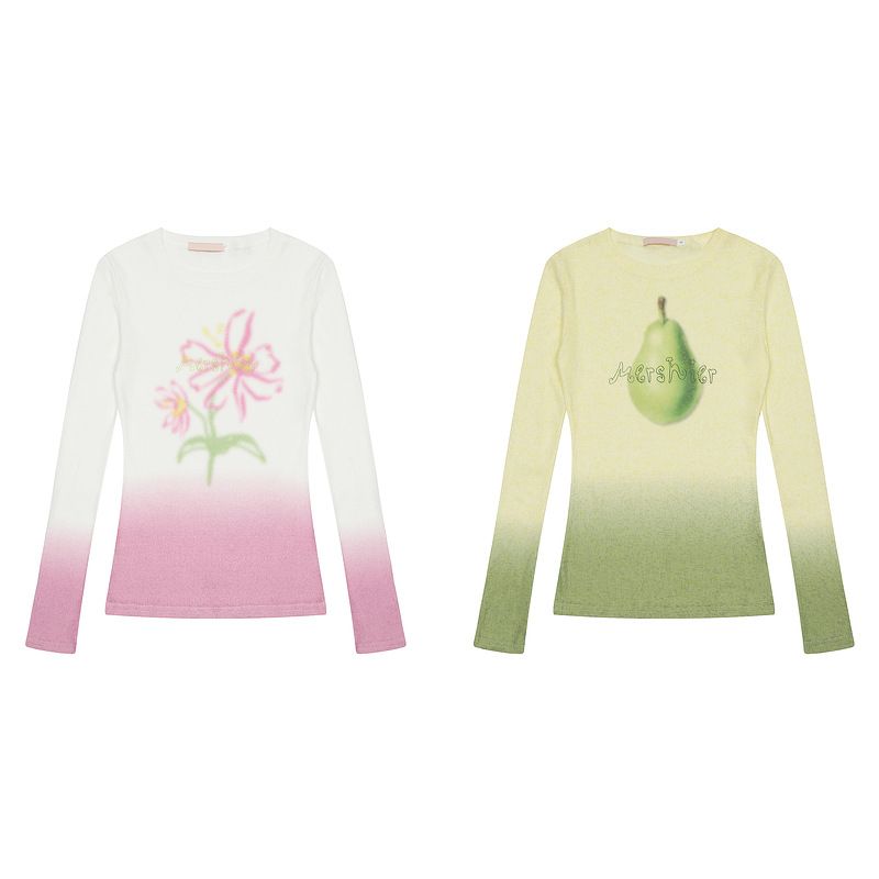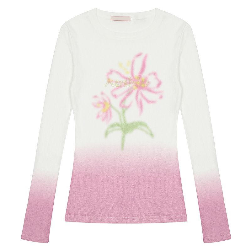 Gradient Flower Long-sleeved T-shirt For Women Light Pink S