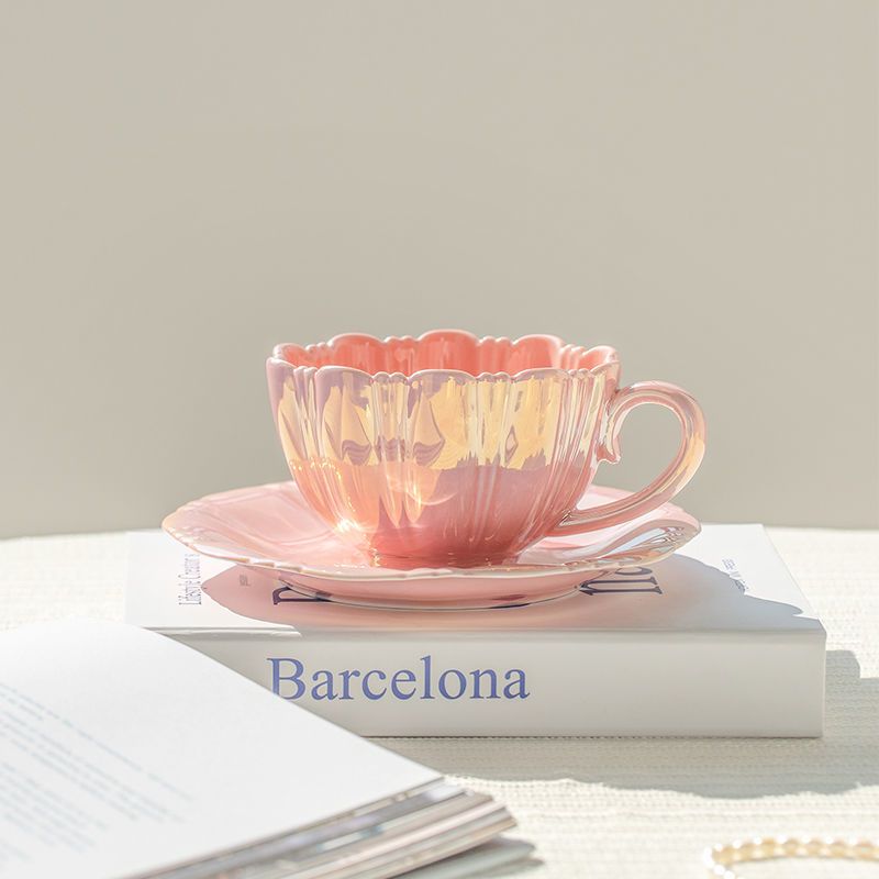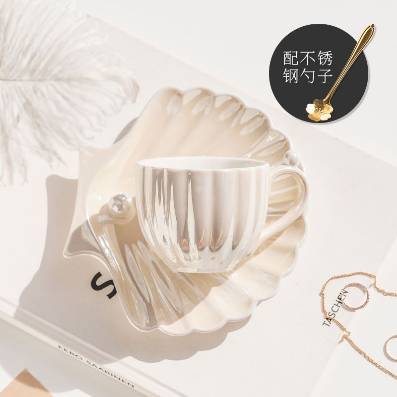 Gradient Shell Ceramic Cups and Saucers Home Breakfast Tea Coffee Mug Holiday Gift Art Abstract Shell Mug Crafts Home Decoration
