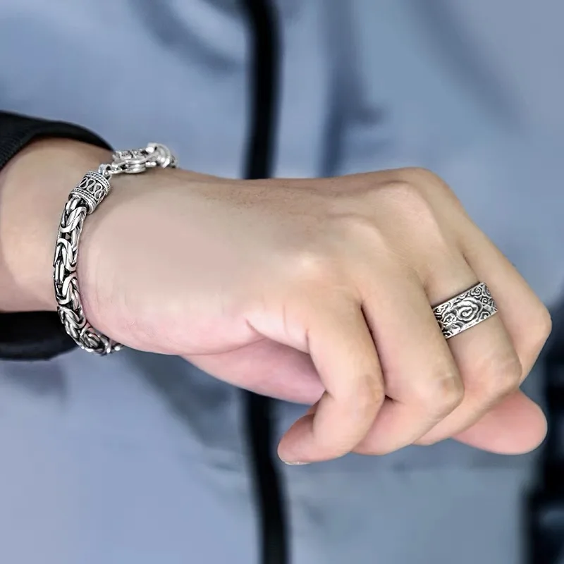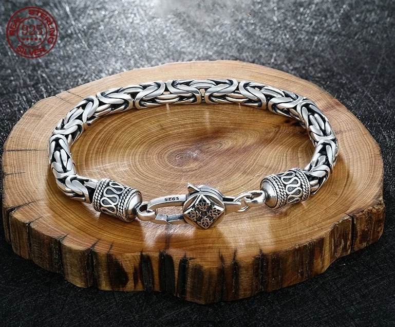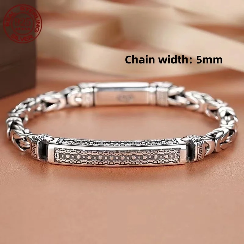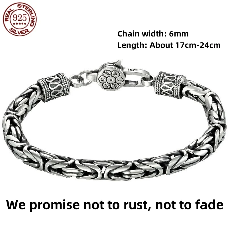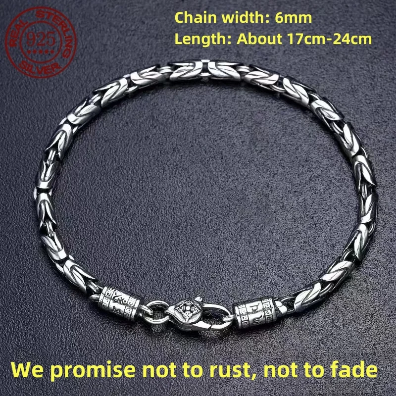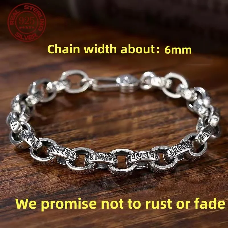 Great Sale S925 sterling silver Bracelet 6MM Vintage Personality Men's and Women's Bracelet Fashion Trend Jewelry Gifts