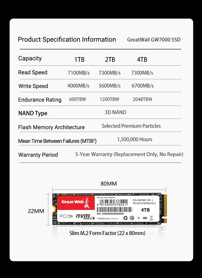 Great Wall GW7000 NVME M.2 PCIe4.0 SSD