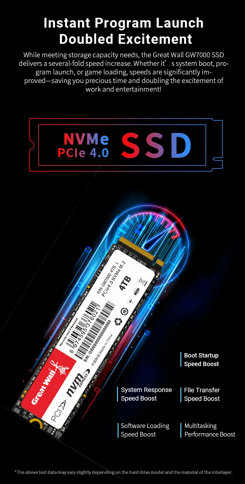Great Wall Internal Solid State Drive M.2 2280 PCIe 4.0 NVMe SSD Game Drive Works for PS5 Hard Disk for Laptop PC