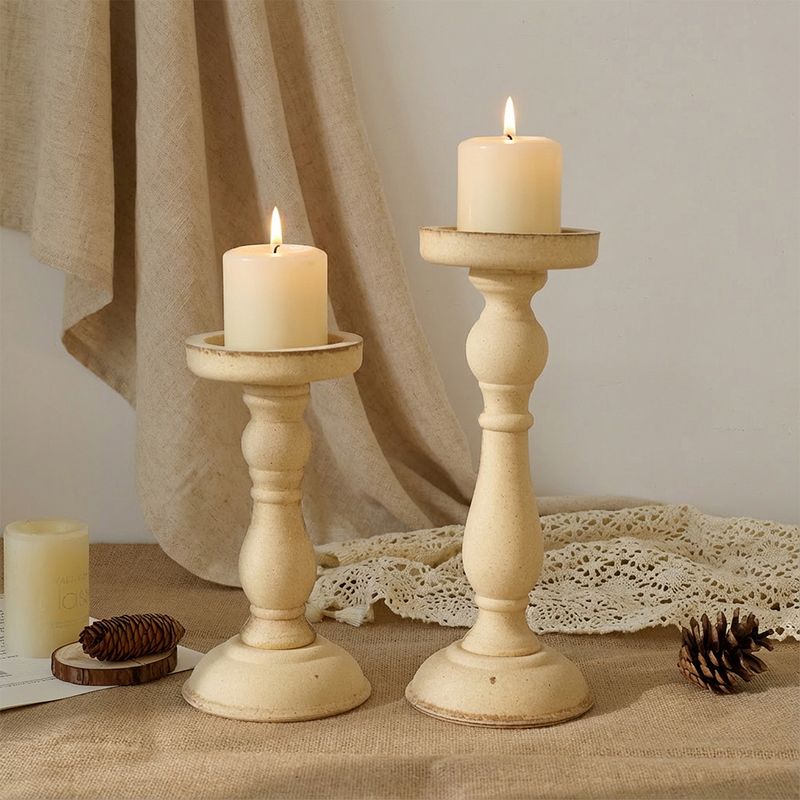 Wood Construction: Wooden candle holders pillar farmhouse style ensures strength and longevity, providing reliable support for pillar candles or wood taper candle holders