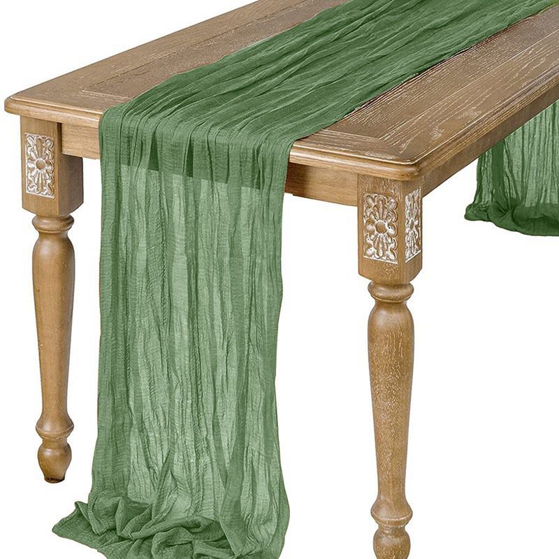 Green Gauze Table Runner Burlap Cheesecloth Table Setting Dining Rustic Country Wedding Birthday Decor Boho Table Linens