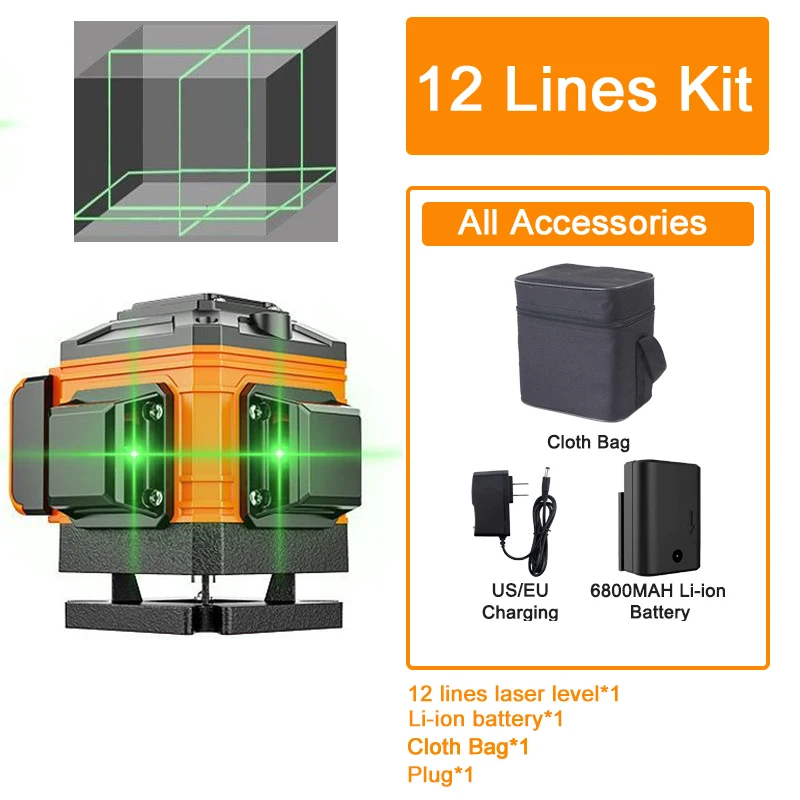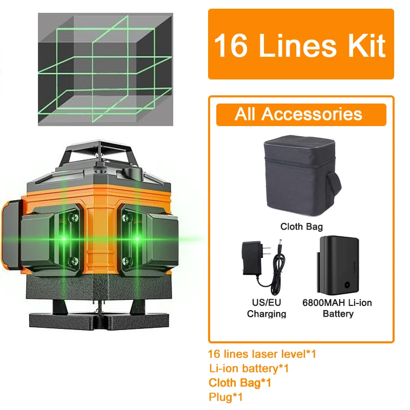 All Accessories:Laser Level*1,Battery*1,Cloth Bag*1 Plugs*1
