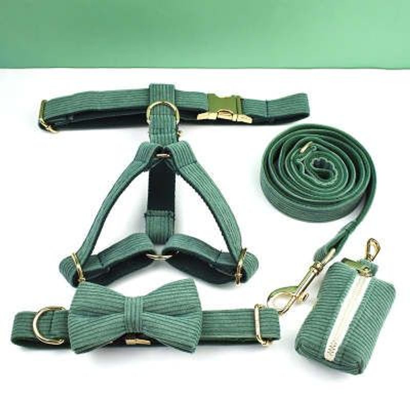 Color: Christmas green velvet gold buckle collar, Christmas green velvet gold buckle traction rope, Christmas green velvet gold buckle chest and back, Christmas green velvet gold buckle dog litter bag, Christmas green velvet bow