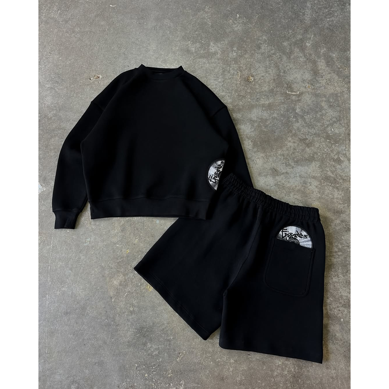 Grey Disc Pattern Mens Shorts Set Sporty Casual Wear Comfortable Loose Tracksuit Breathable Fabric Minimalist Modern Athleisure