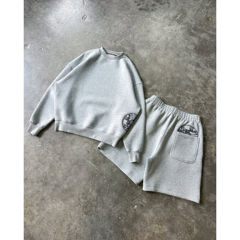 Grey Disc Pattern Mens Shorts Set Sporty Casual Wear Comfortable Loose Tracksuit Breathable Fabric Minimalist Modern Athleisure