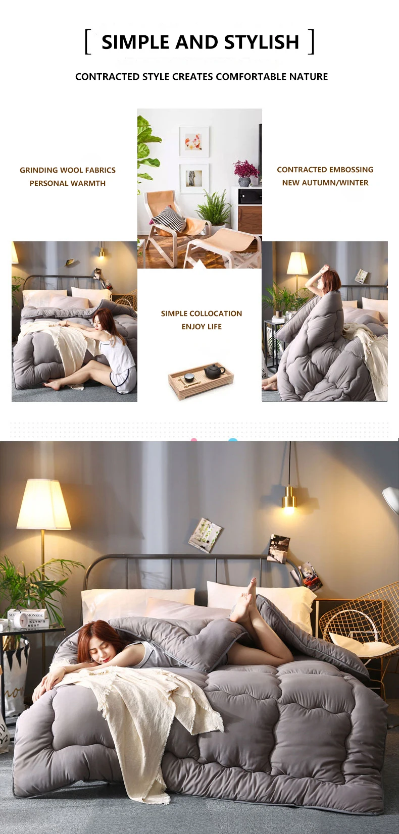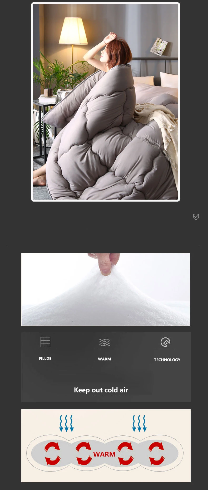 Grey thick quilted winter hotel style quilt Comforter Queen King soft winter quilt very warm220x240Quilts blanket