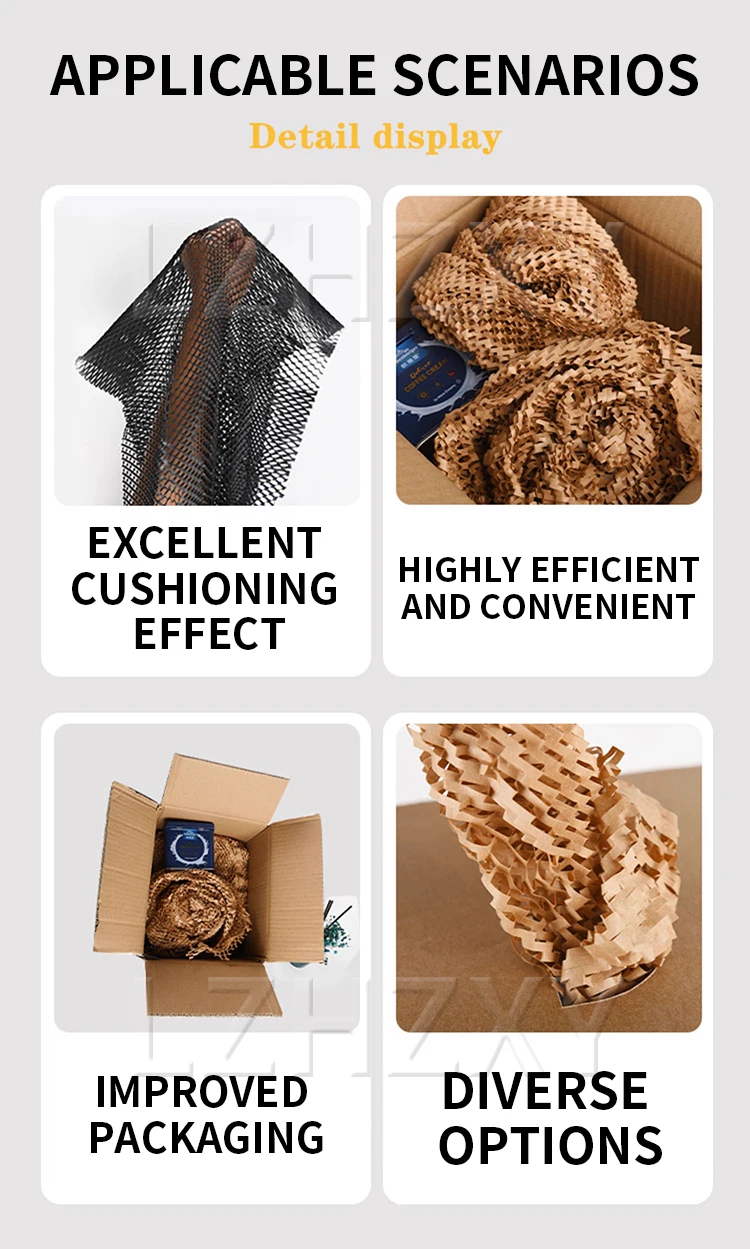 Honeycomb Paper: Stretched paper forms a 3D honeycomb structure, eliminating the need for tape or glue during packaging.
