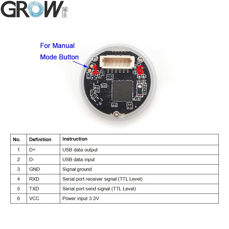 GROW GM861S UART/USB Interface 1D/2D Bar Code QR Code Barcode Reader Module White Green LED