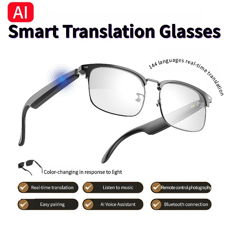*AI Bluetooth Audio Call Fashion Smart Glasses: Equipped with functions such as AI intelligent voice and video real-time translation, AI dialogue and Q&A, AI intelligent translation (including translator mode and the translation mode combining glasses and mobile phone, which can customize the translation of more than 163 languages)