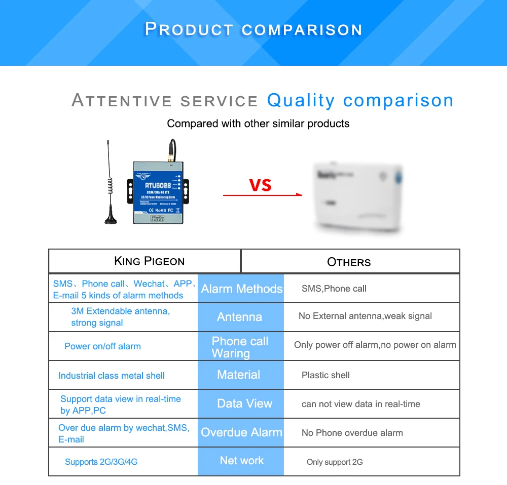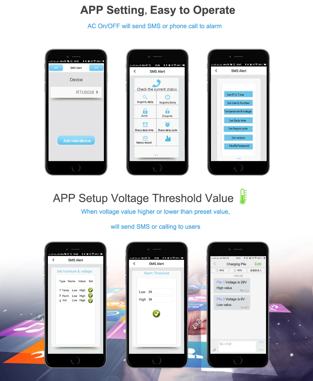 2. No call charges for inquiry. the GSM 3G 4G LTE AC/DC Power Monitoring Alarm rejects the call from authorized number then return onsite power voltage on the first 'ring';