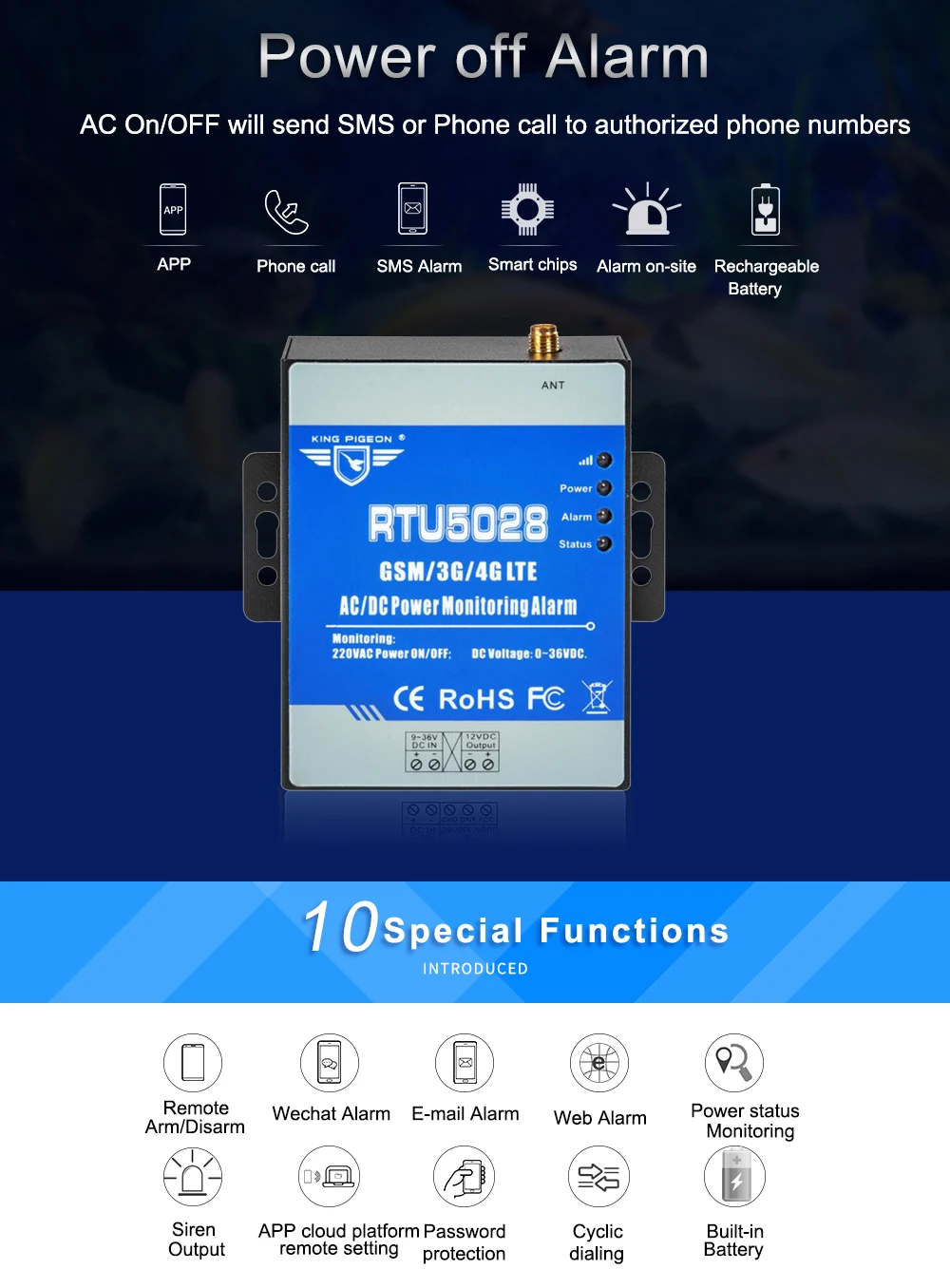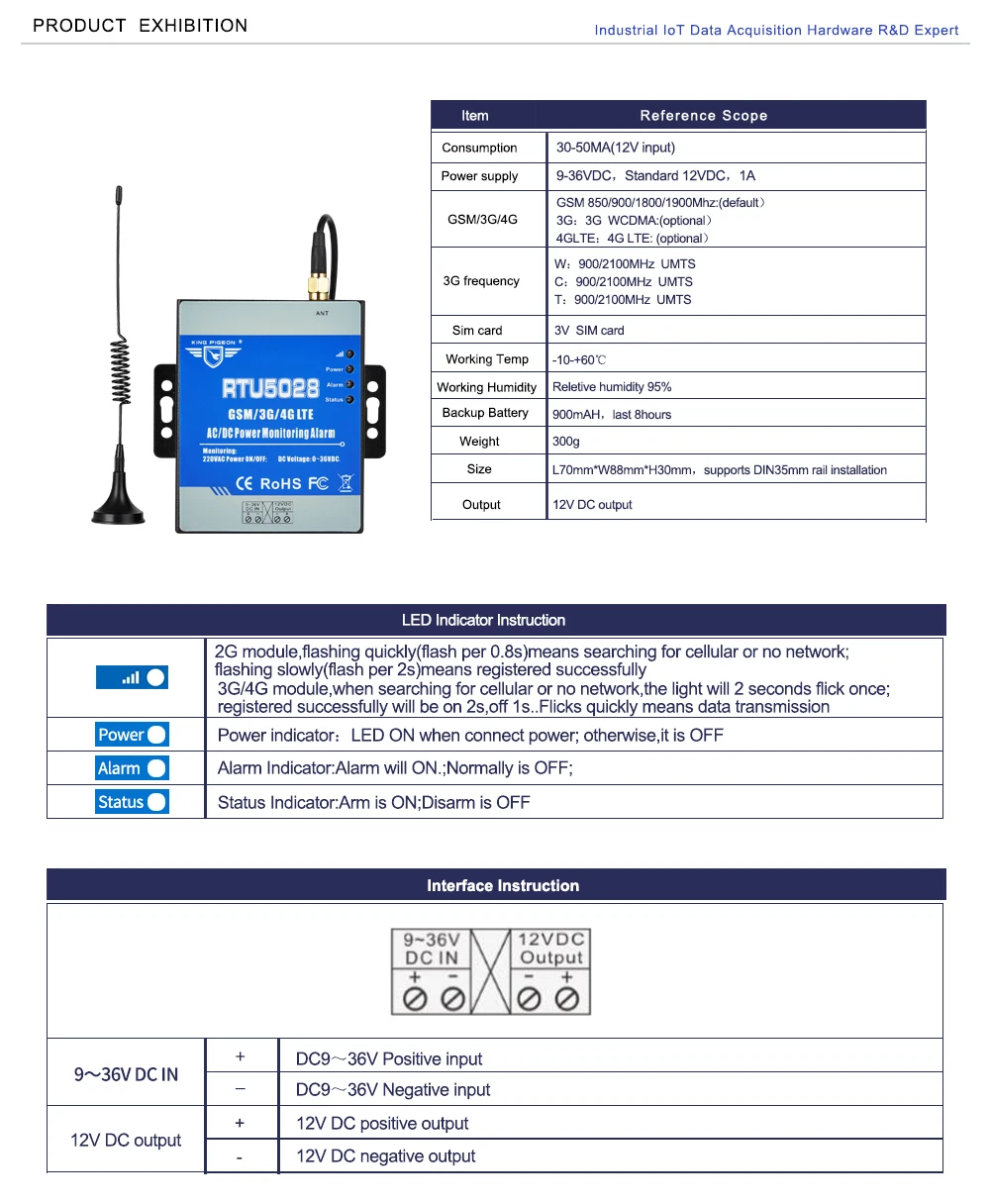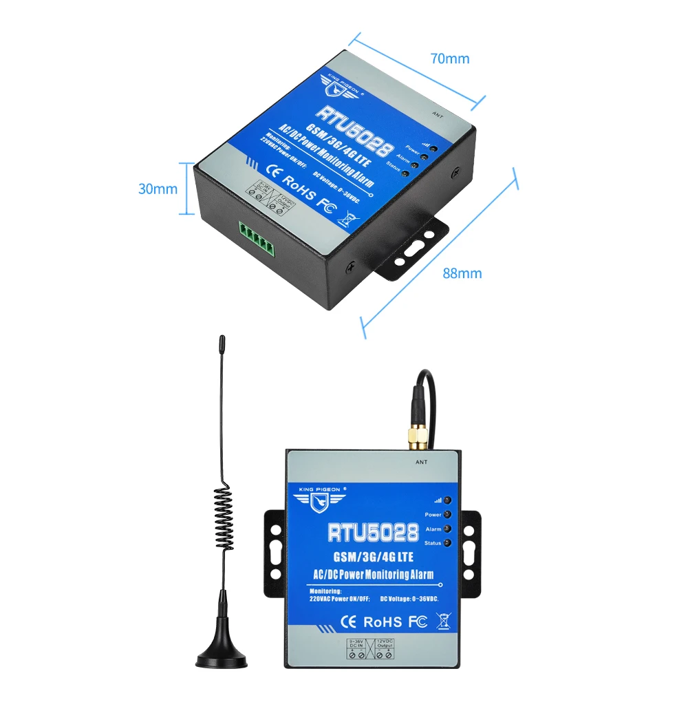 The GSM 3G 4G LTE AC/DC Power Monitoring Alarm is special for remotely monitoring power status through wireless GSM/3G/4G Network. When the power voltage exceed high threshold or low threshold value, will send SMS alert to upto 10 preset mobile phone immediately,It supports Modbus TCP and Modbus RTU Over TCP,can be easily integrated to Cloud Platform.