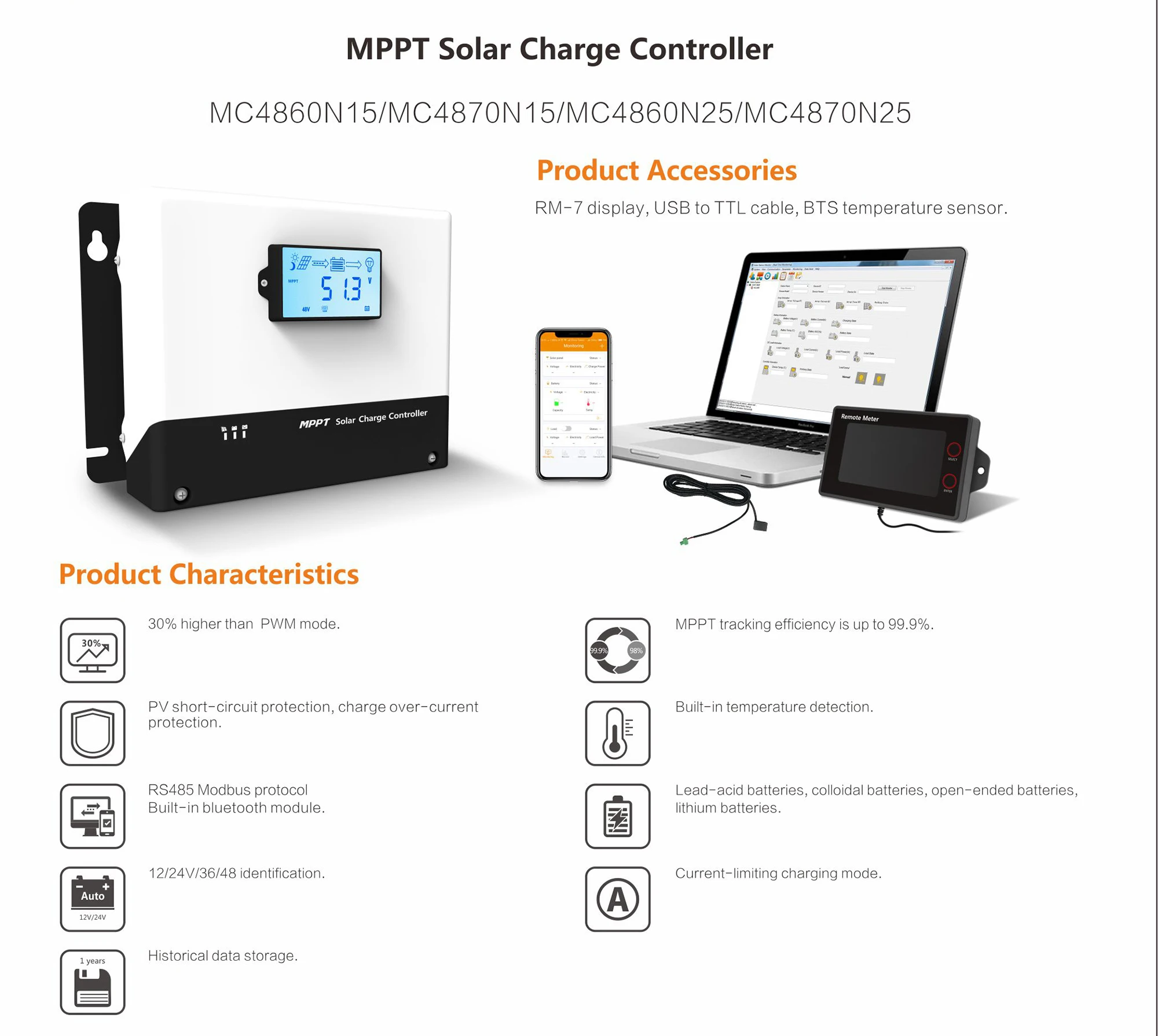 2、MPPT charge efficiency is greater than traditional PWM charge efficiency by about 15% ~20%.