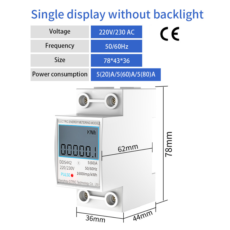 GTRIC Electric Energy Meter 2P Single Phase LCD Digital Display DIN Rail Mounting 2-wire Electric Meter Wattmeter AC 230V 50Hz
