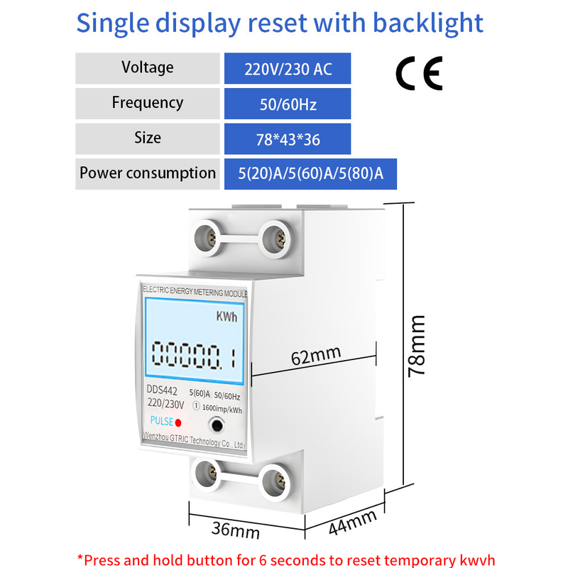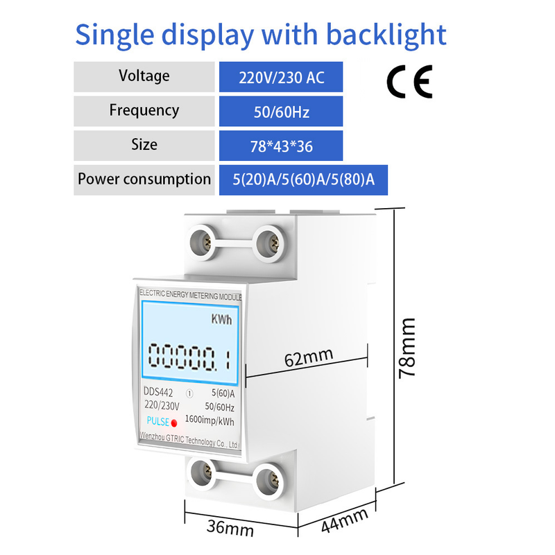 GTRIC Electric Energy Meter 2P Single Phase LCD Digital Display DIN Rail Mounting 2-wire Electric Meter Wattmeter AC 230V 50Hz