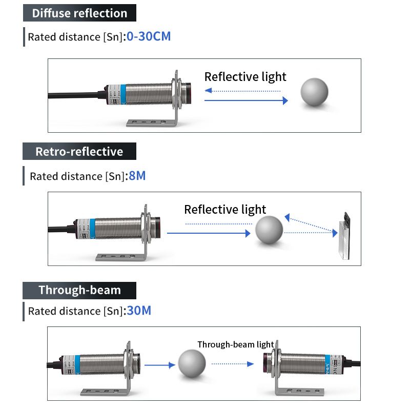 GTRIC Laser Photoelectric Sensor Retro-reflective M18 Series 10-30V NPN PNP Visible Spot 2mm Sensing Distance 8M Adjustable