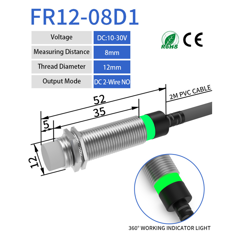 GTRIC Long Distance Inductive Sensor Metal Proximity Switch M12 NPN PNP NO NC 10-30V DC Flush Non-Flush Sensing Range 4mm 8mm