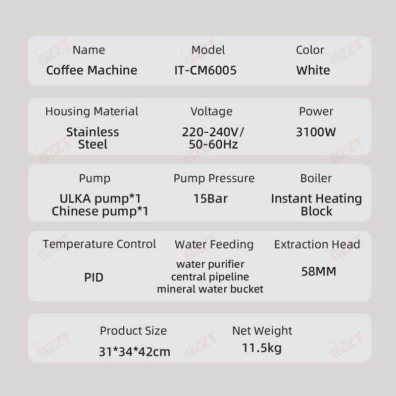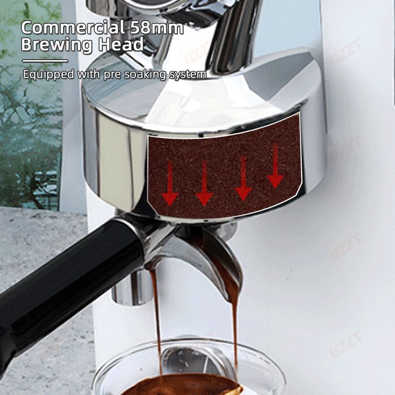 6. It is equipped with a commercial 58mm brewing head and a pre-infusion system.