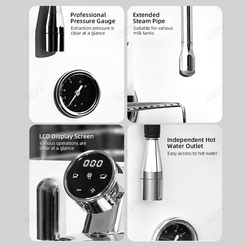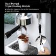 1. It has a double pump triple heating system. It makes coffee and produces steam at the same time, which is stable and efficient.