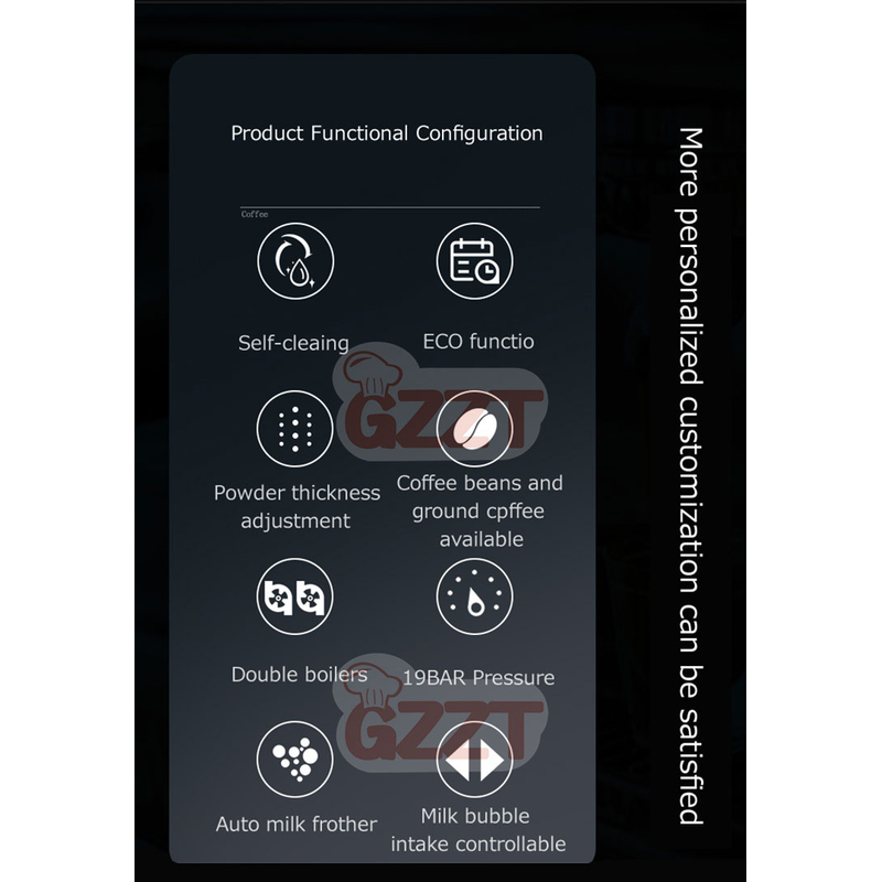 Water pump pressure: 19 Bar ( Italy ULKA Pump) Italian imported movement
