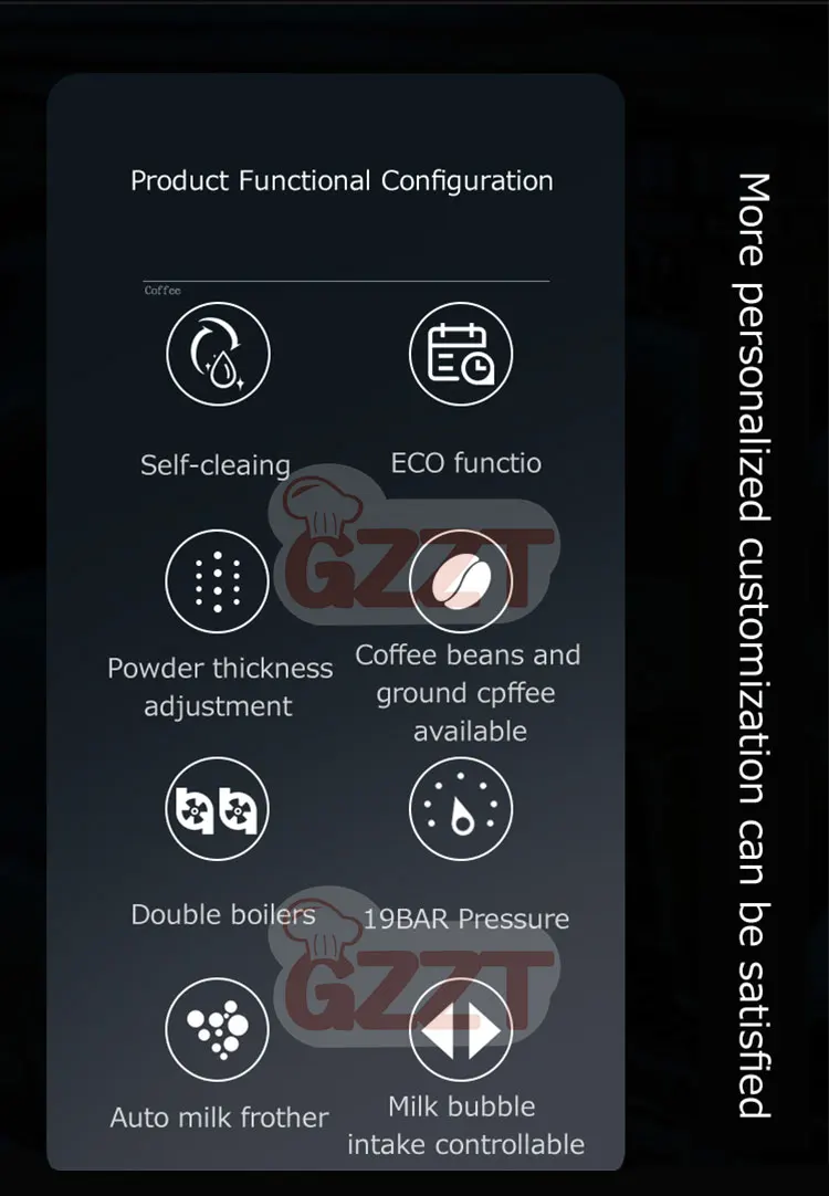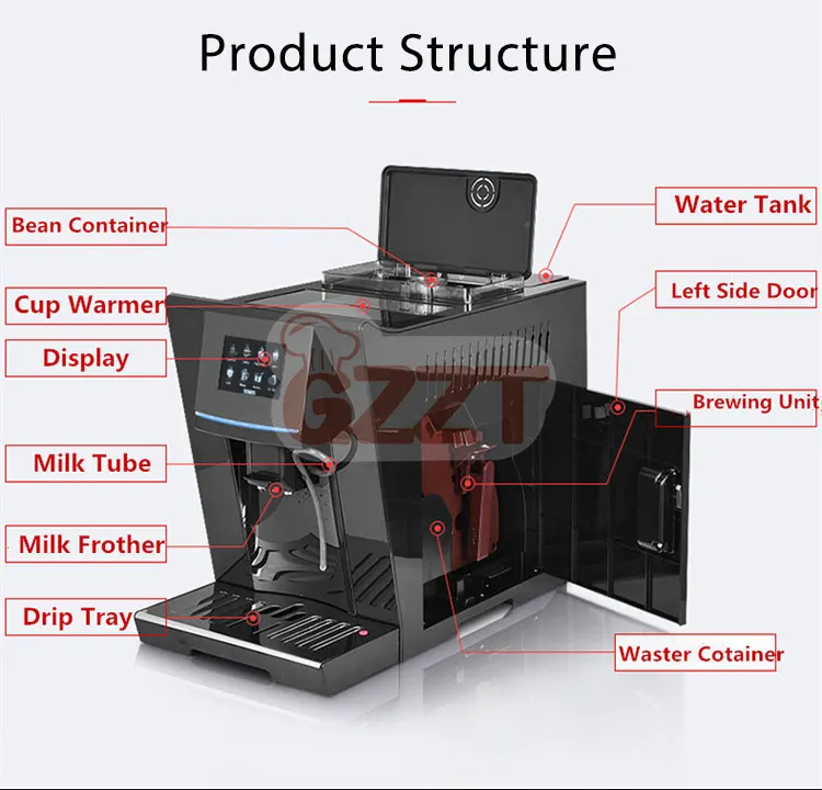 9. It can adjust the amount of coffee powder (strong coffee - light coffee), set the time of hot water, and have a fan cooling system.